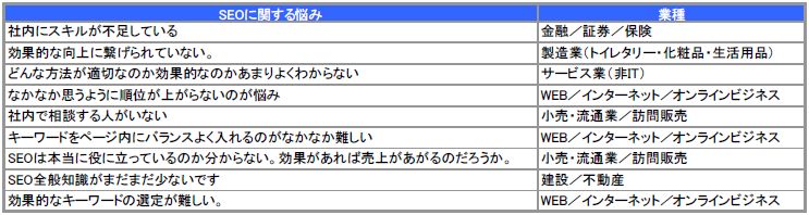SEOについて社内スキルの不足が悩み