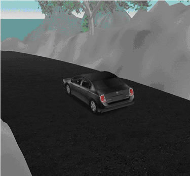 実際にコースもあるので車に乗って走り回ることができる。ギアは5段階だ(5速に入れたときは、スピードが速すぎて海に突っ込んでしまった……)。