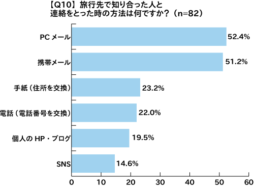 次にQ9~10では、旅行先で知り合った人との旅行後の連絡を取る方法について尋ねた。