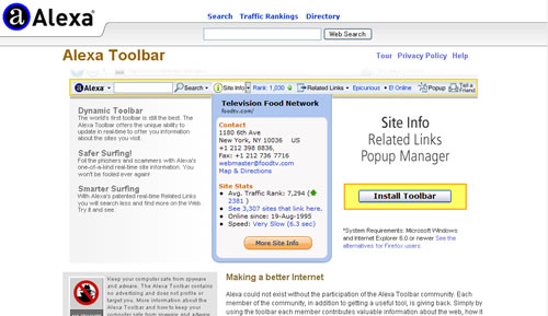そこで、Alexaは減少するデータ取得先をカバーするために、アレクサ・ツールバーの配布に力を入れます。Internet Explorer用に作られたこのツールバーをインストールすると、上記の類似サイト情報を表示する機能を付け加えたり、Alexaのページに行かなくても今見ているページのアレクサ・ランキング等をブラウザのメニューに表示させることができます。