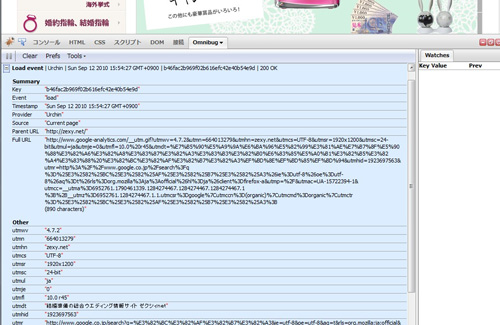 Omnibugはアクセス解析ツールの検証を楽にするために開発されたプラグインです。Firebugのメニューに「Omnibug」というメニューが追加され、ページに追加されているアクセス解析ツールの一覧と、飛んでいるデータが見れます。