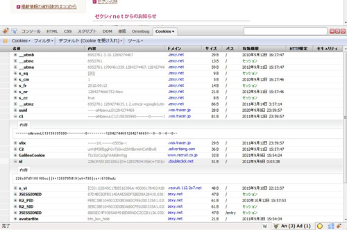 FireCookieは、「Firebug」でCookieに関する情報を見ることができるメニューを追加できます。そして、Cookieの一覧・中身・受け入れ可否の確認をできます。