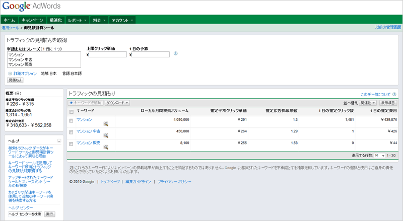 クリック単価はGoogle AdWordsの「御見積計算ツール」を利用しよう
