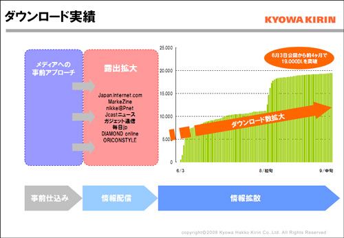 iPadアプリは6月3日に公開されたが、各メディアに対しては事前アプローチを行っていた。その結果、7月以降リーチの伸びが急速になり、相乗効果としてテレビの視聴率も上昇を見せた。