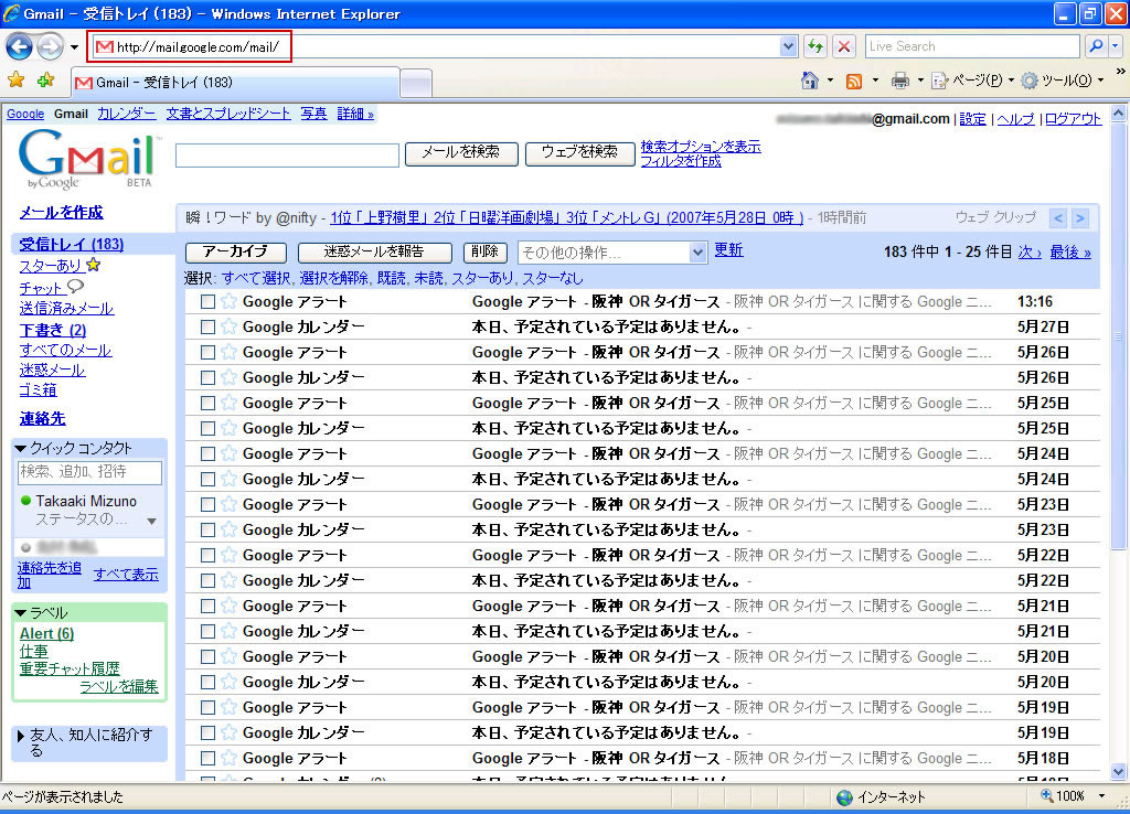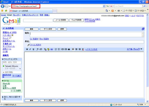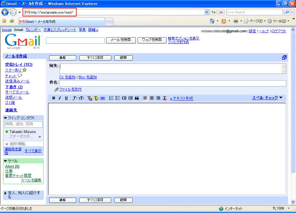 例えばGmailでは、「メールの作成」リンクをクリックすると、ページが切り替わって新規メールの作成画面が表示されますが、この際にもページの遷移は起こっておらず、JavaScriptを使って表示を切り替えていることがわかります。