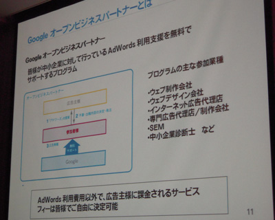 さて、ここから、Googleオープンビジネスパートナーの詳細が紹介された。
