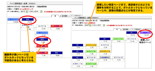探している情報がサイト内でなかなか見つからないとき、みなさんはどうしていますか? サイトマップで確認する、という方も多いのではないでしょうか。サイトマップページへの遷移元をチェックすることにより、どのページでユーザが迷いがちであるか知ることができます。あわせて遷移先をチェックし、遷移元→サイトマップ→遷移先の流れに傾向が見られる場合は、その遷移元ページに遷移先ページへのリンクを設置することをお勧めします。