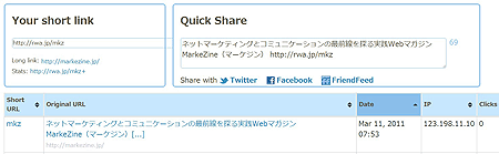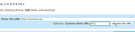 2)「Shorten the URL」を押すと短縮URLが生成され、登録されます。