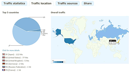 次にクリックされた国。残念ながら国単位でしかみることができません。都道府県単位であればもっと使えそうですね。