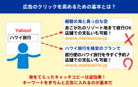 「クリック率を上げるには、検索キーワードと関連性の高い、説得力のある広告を作成することです。大事なのは、このような“基本”を忠実に実行することなんです」