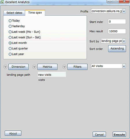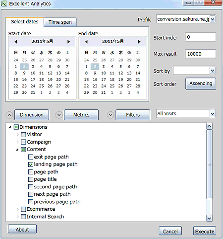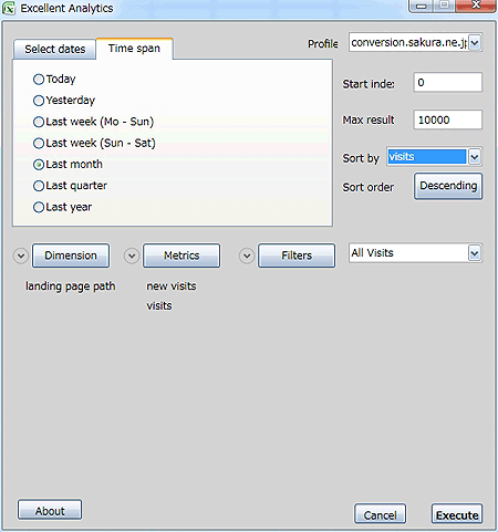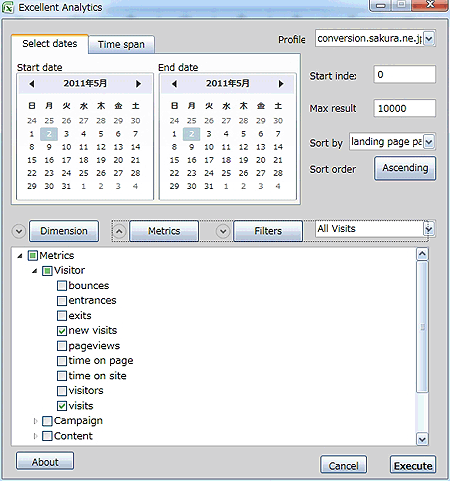 これで設定は完了です。後は右下にある「Execute」ボタンを押すとレポートが作成されます。以下のようなレポートが作成されるはずです。
