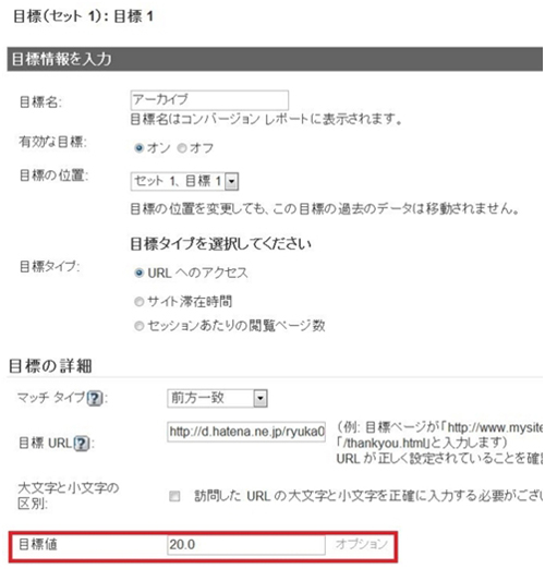 Google Analyticsの目標を設定するページの「目標値」に金額をセットします。こちらは計測コードに手を入れる必要があります。