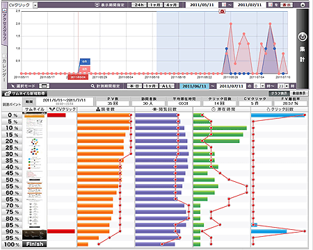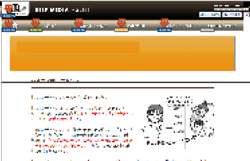サムネイルをクリックして「Web表示」のボタンを押すと、実際のページが表示され、その上にクリック箇所のランキングが表示されます。一目でクリック箇所がわかるのが便利です。