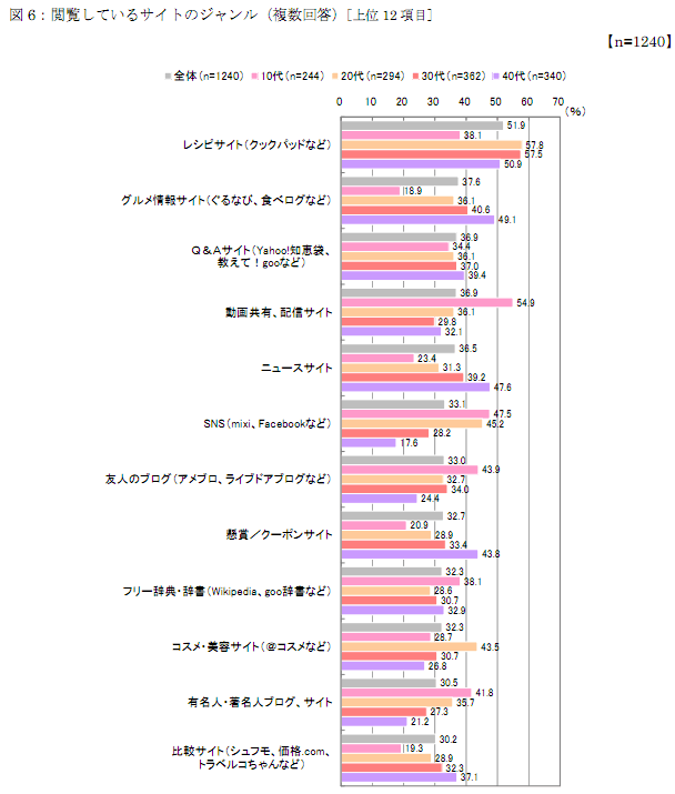 図6:閲覧しているサイトのジャンル(複数回答)[上位12項目]