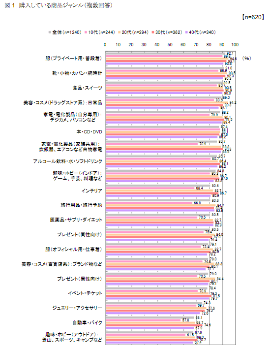 女性の購入商品ジャンルは幅広く、特に身の回りのお洒落のための商品を購入
