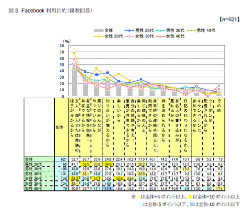 Facebook利用目的として「有益な情報が得られるから」との回答は男性20代が最多