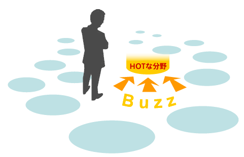 ただし、1で一般消費者(Consumer)向けとなりますと、市場が広すぎて温めなければならないフィールドが膨大です。そう考えると、Consumerに良い意味でバイアスがかかっていた方が、「AIS」までをショートカットできるかもしれません。理論的には、データベースにフィールドを示すデータ(職業、住所、収入、趣味…)があれば、DMなどを打つ前にその分野にBuzzを流しておけばよいので、購入に一定の志向性を与えることは比較的容易なはずです。