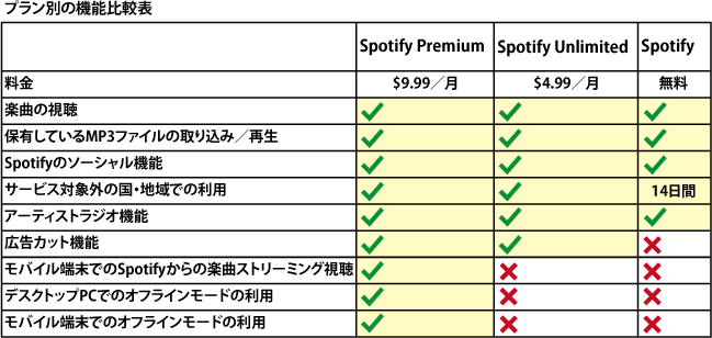 「Spotify」「Unlimited」「Premium」 ― プランによる機能の違い