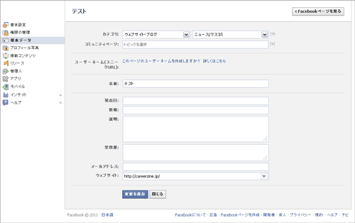 FacebookページのユニークURLを取得できます。 http://www.facebook.com/xxxxxxxxxx の(xxxxxxxxxx)の部分を、自由に設定できるわけです。「基本データ」の「ユーザーネーム」から、作成を進めてください。