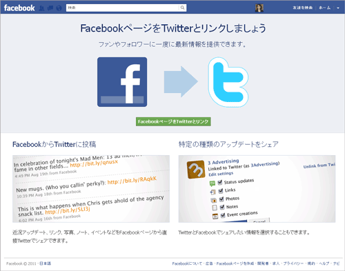 Facebook専任の担当者を置けることが理想的ですが、現実的にはなかなか難しいかもしれません。すでに更新しているサイトと連携する方が効率的でしょう。ここでは、Twitterとの連携方法を紹介します。