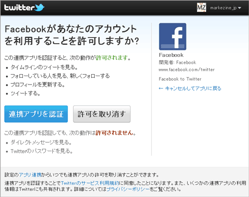 「Twitterとリンクする」をクリックすると、以下の画面に移動します。
