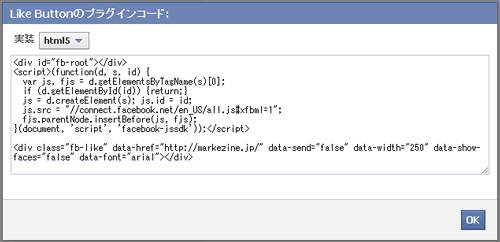 ソーシャルプラグイン同様、どういった内容を配信したいのかを入力すればコードが表示されます。