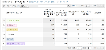 • ファーストクリックによるコンバージョン数:起点の回数を表しています。