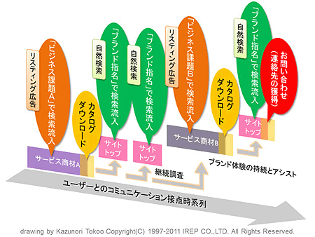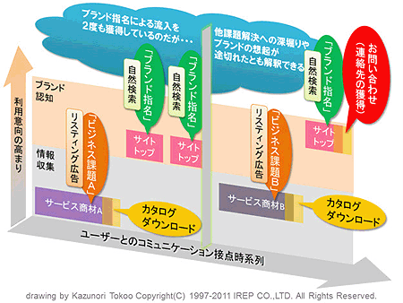ユーザーのブランド想起と利用意向の向上に至る生い立ちでもあり、点の接点から線の接点、面の接点そして立体の接点へと進化させる、「ユーザーとWebサイトを結ぶ信頼の物語」分析と言えるだろう。