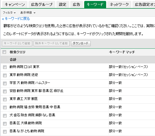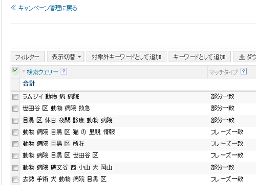 また、部分一致での余分な露出を防ぐためのキーワードを見つけることも可能です。余分なキーワードが検出されるようであれば、即座に除外キーワードとして登録することで、今後の部分一致の余分な誇張を防ぐことができるわけです。