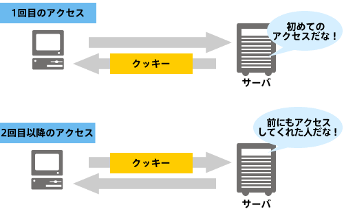 続いて「クッキーを利用できない」という点です。クッキーについては、本連載ではまだあまり詳しく解説していませんが、サーバからブラウザに小さなデータを送ってそれをブラウザに保存してもらい、アクセスのたびにそれを送り返してもらうという仕組のことです。これを使って、「あるサイトにログインしているかどうかとか」といったことを保存させたりすることに利用されますが、アクセス解析にも重要な役割をはたします。それはアクセスしてきたブラウザごとに値の異なるクッキーを発行し、それを使ってブラウザごとに識別することで、いわゆる「ユニークユーザー数」を取得することが可能だからです。
