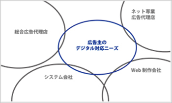 総合広告代理店はデジタル領域の重要性を理解しつつも、デジタル専門ではない分、マス広告への対応とのバランスを見つつ、緩やかにデジタルへの対応強化に動いているのではないでしょうか。そのような中で、広告主のニーズはエアポケット化していいます。