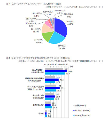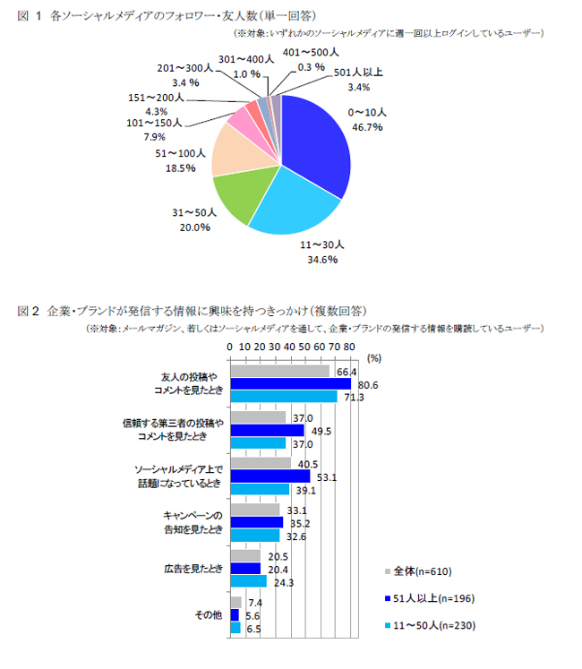 ソーシャルメディアユーザーに、フォロワー・友人数を尋ねたところ、30人以下との回答が過半数を占める結果となりました。