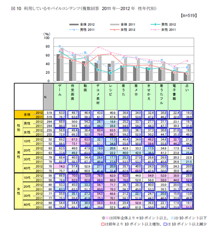 モバイルコンテンツ利用率は昨年に比べ大幅に減少