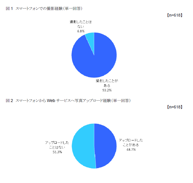 スマートフォンでの写真撮影経験は9割、Webへのアップロード経験は5割
