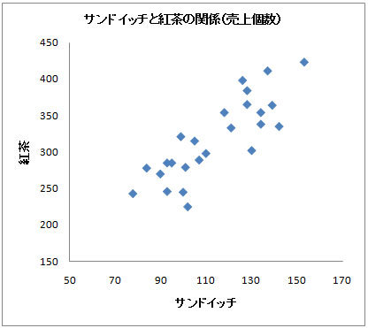 例)「サンドイッチの売上」と「紅茶の売上」の関係