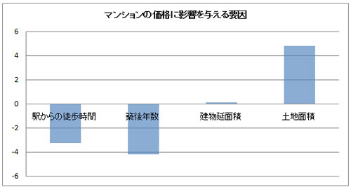例)「マンション価格」と「築年数」「面積」「駅からの徒歩時間」など