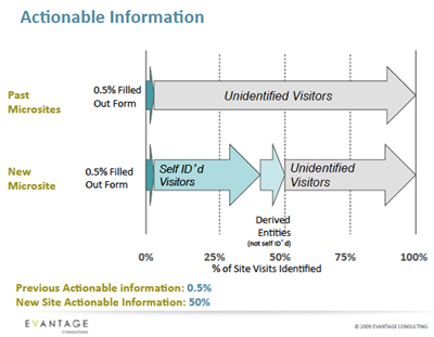 この結果、アクション可能なデータが、通常の問い合わせフォーム送信の場合の0.5%から50%に増えた(IPによる会社名の推測を含む )という驚きの成果が発表された。