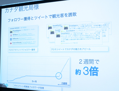 しかし、プロモアカウントを実施することで、フォロワー数は2週間で約3倍、さらに2週間で7000人近くに達した。カナダ観光局は「コストが非常に安かった」「フォロワーの質が高く、反応率が高かった」と評価しており、獲得したフォロワーに対して確実にツイートを届けたいと、さらにプロモツイートを実施している。