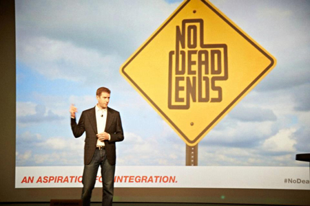 最初のジェネラルセッションでは、Crispin, Porter + Bogusky社(以下、CP+B)のVice Presidentである、マット・ウォルシュ氏が登壇。CP+Bはブランディングを得意とする広告エージェンシーで、彼はCP+BのExperience Design Departmentを率いてDomino's、American Express、Best Buy、Microsoft、Coke Zero、Volkswagenなどのクライアントのブランディング戦略の立案と実行を担っている。ウォルシュ氏は「No dead ends」という言葉でこれからのマーケティングコミュニケーションのあるべき姿を描いてみせた。