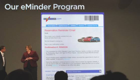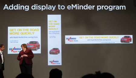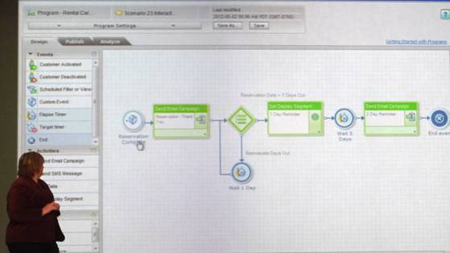 初日のジェネラルセッションでは大手レンタカー会社Dollar Thrifty Automotive Group(DTG) のDirector of eMarketing サンディ・マーティン氏が、Responsys Interact Suiteを使ったディスプレイ広告による「リレーションシップ・リターゲティング」の事例を紹介した。