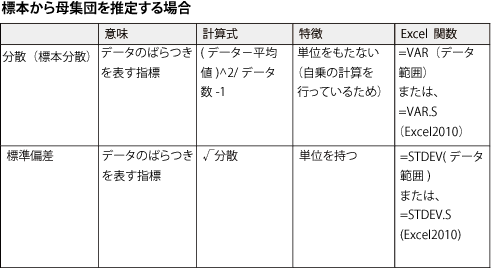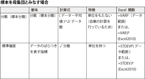 分散、標準偏差を求める方法には、その使用目的に合わせて2種類の計算方法がありますので、母集団をどう定義するかによって使い分けをしましょう!