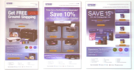 左からプリンタの非ユーザー、エントリーユーザー、ロイヤルユーザーにそれぞれ対応していて、非ユーザーには送料無料キャンペーン、エントリーユーザーにはアップグレードキャンペーン、ロイヤルユーザーにはサプライのオファーを訴求している。