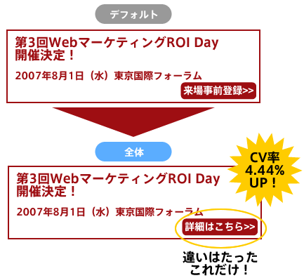 去る8/1にWebマーケティングROI DAYというWebマーケティングのカンファレンスを自社開催したのですが、実はこのときに自社サイトでテストを行い、サイト訪問者がどういったメッセージにより反応するか、検証を行っていました。