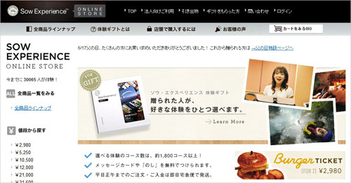 もうひとつ、ちょっぴり素敵なギフトを贈る方法が「Sow Experience」(ソウ・エクスペリエンス)。なんと、体験カタログをプレゼントできちゃうの。スパやマッサージのようなリラックス体験から、キャニオニングのようなアドベンチャー、ホテル宿泊やレストランまで、ありとあらゆる『体験』を贈り物にできる。