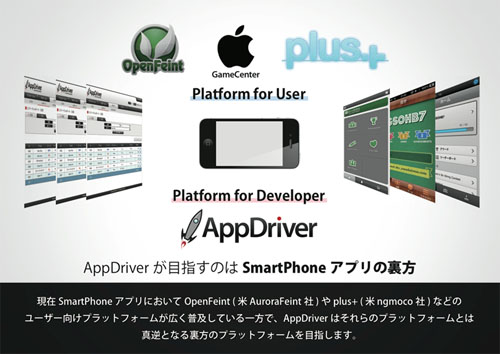 まだビジネスモデルが形成されていない市場に対して、今までと同じ事業を展開したとしてもスマートフォン市場が大きくなっていくのを待つことしかできない。であれば、当時盛り上がり始めていたスマートフォンアプリのデベロッパーがうまくビジネスを展開できるようなプラットフォームを僕達が提供して市場を作って行こう。そういう考えに至り、アプリデベロッパー向けのプラットフォームとしてAppDriverを展開することにしました。