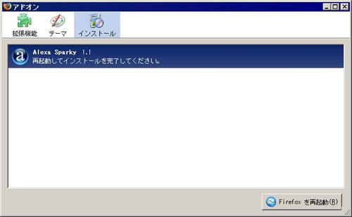 インストールが終了したら、Firefoxを再起動すればSparkyが有効になります。