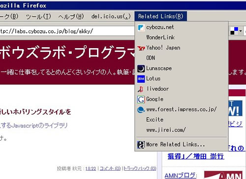 また、ナビゲーションバーには、"Related Links"(関連するほかのサイト)を表示するメニューが追加されています。今見ているドメインと似ていたり、関連が深いドメインのサイトが推薦されます。