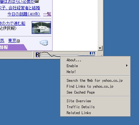 ページを移るたびに、今見ているページのドメインに関する情報が出てくるので、いろいろなページを見てAlexaのデータをチェックするような人には手間が省けて有用かと思います。