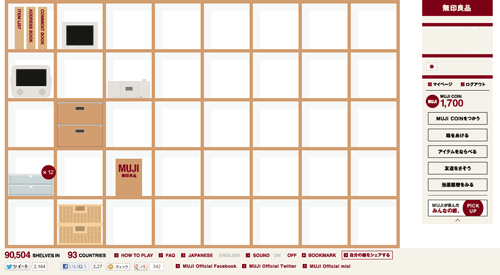 無印良品はMUJI LIFE「自分の棚」をつくろうという、顧客に自分らしさを表現してもらうサービスを提供している。2011年11月のスタートから8か月、93か国約90,500名の利用者がいる。ネット上の棚に無印良品の商品やお気に入りの本などを並べて、友人と棚の情報を共有できる。無印良品のアイテムを中心としたコミュニケーションプラットフォームという位置付けであり、FacebookやTwitter、mixiのアカウントで利用できる。このサービスの特徴はシンプルということ。このシンプルさ、すなわち言語(説明)を必要としない点が、グローバルコミュニケーションの要だ。
