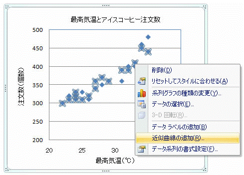 2.メニューが表示されたら、[近似曲線の追加]を選択します。